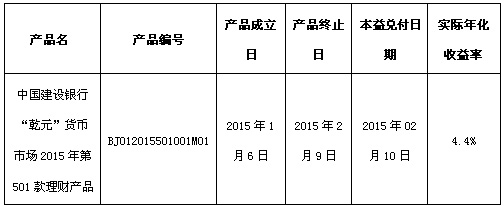 根据与投资者的约定,中国建设银行北京市分行发行的下列理财产品已经到期并完成资金兑付,现将理财产品兑付及清算情况进行信息披露: