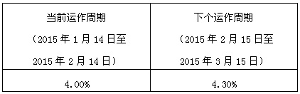 下个运作周期客户预期年化收益率于2015年2月15日(含)开始执行。