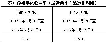 下个运作周期客户预期年化收益率于2015年6月29日(含)开始执行。