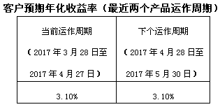 下个运作周期客户预期年化收益率于2017年4月28日(含)开始执行。