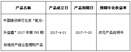 关于中国建设银行北京“乾元-升益鑫”2017年第765期标准资产组合型理财产品成立的公告