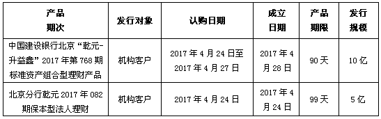 中国建设银行北京市分行定于2017年4月24日发行理财产品,现将相关发行情况公告如下: