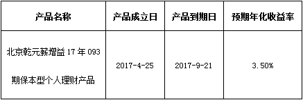关于北京乾元薪增益17年093期保本型个人理财产品成立的公告