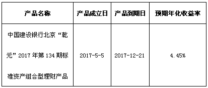关于中国建设银行北京“乾元”2017年第134期标准资产组合型理财产品成立的公告