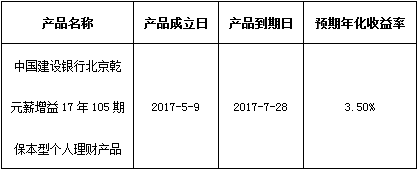 关于中国建设银行北京乾元薪增益17年105期保本型个人理财产品成立的公告