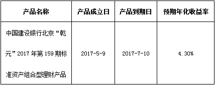 关于中国建设银行北京“乾元”2017年第159期标准资产组合型理财产品成立的公告