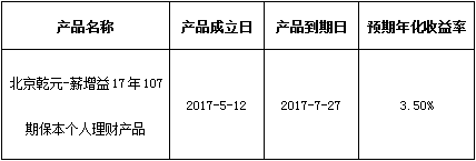 关于北京乾元-薪增益17年107期保本个人理财产品成立的公告