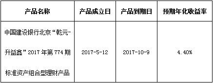关于中国建设银行北京“乾元-升益鑫”2017年第774期标准资产组合型理财产品成立的公告