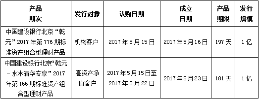中国建设银行北京市分行定于2017年5月15日发行理财产品,现将相关发行情况公告如下: