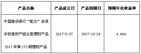 关于中国建设银行“乾元”非保本标准资产组合型理财产品2017年第173期理财产品成立的公告