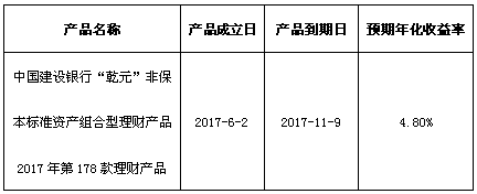 关于中国建设银行“乾元”非保本标准资产组合型理财产品2017年第178款理财产品成立的公告