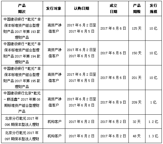 中国建设银行北京市分行定于2017年6月2日发行理财产品,现将相关发行情况公告如下: