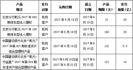中国建设银行北京市分行定于2017年6月19日发行理财产品,现将相关发行情况公告如下: