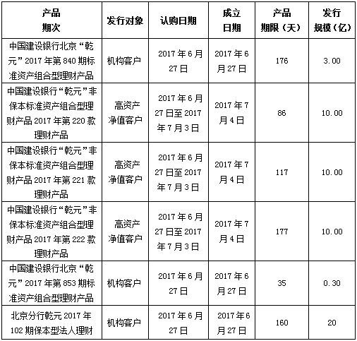 中国建设银行北京市分行定于2017年6月27日发行理财产品,现将相关发行情况公告如下: