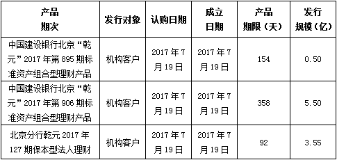 中国建设银行北京市分行定于2017年7月19日发行理财产品,现将相关发行情况公告如下: