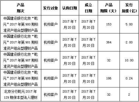中国建设银行北京市分行定于2017年7月20日发行理财产品,现将相关发行情况公告如下:
