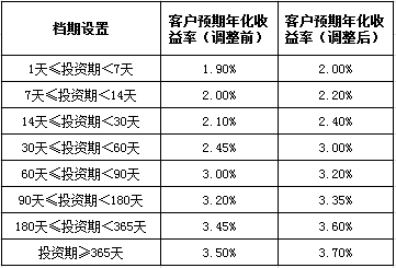 新客户预期年化收益率于2017年8月28日(含)起执行。对于2017年8月28日(不含)前已经购买成功且未赎回的所有存量客户投资本金,按照客户实际持有天数,其中2017年8月28日(不含)前持有部分执行原客户预期年化收益率,2017年8月28日(含)后持有部分自动执行新客户预期年化收益率,但以最终支付的实际年化收益率为准。