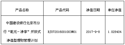 中国建设银行北京市分行“乾元-净享”开放式净值型理财管理计划净值公布如下:
