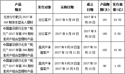 中国建设银行北京市分行定于2017年9月28日发行理财产品,现将相关发行情况公告如下: