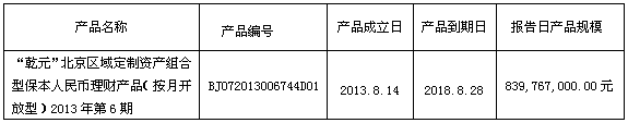 “乾元”北京区域定制资产组合型保本人民币理财产品(按月开放型)2013年第6期