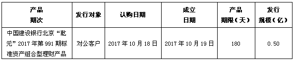 中国建设银行北京市分行定于2017年10月18日发行理财产品,现将相关发行情况公告如下: