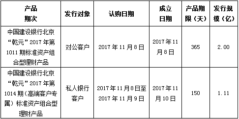 中国建设银行北京市分行定于2017年11月8日发行理财产品,现将相关发行情况公告如下: