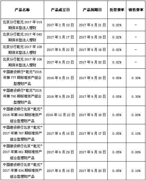 根据与投资者的约定,中国建设银行发行的下列理财产品已经到期并完成资金兑付,现将有关情况公告如下: