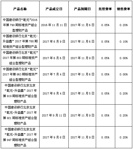 中国建设银行对公类理财产品终止及清算公告2017年11月10日