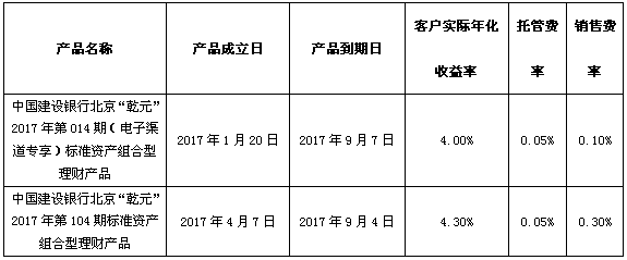 中国建设银行个人类理财产品终止及清算公告2017年9月8日