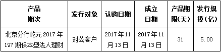 中国建设银行北京市分行定于2017年11月13日发行理财产品,现将相关发行情况公告如下: