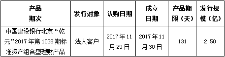中国建设银行北京市分行定于2017年11月29日发行理财产品,现将相关发行情况公告如下: