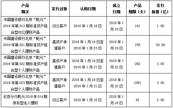 中国建设银行北京市分行定于2018年1月18日发行理财产品,现将相关发行情况公告如下: