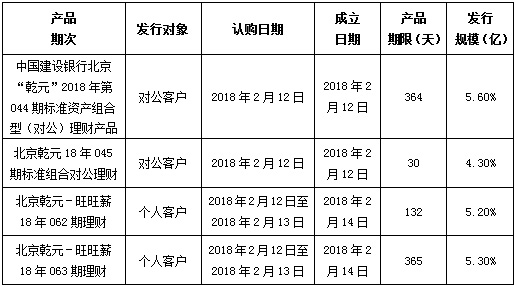 中国建设银行北京市分行定于2018年2月12日发行理财产品,现将相关发行情况公告如下: