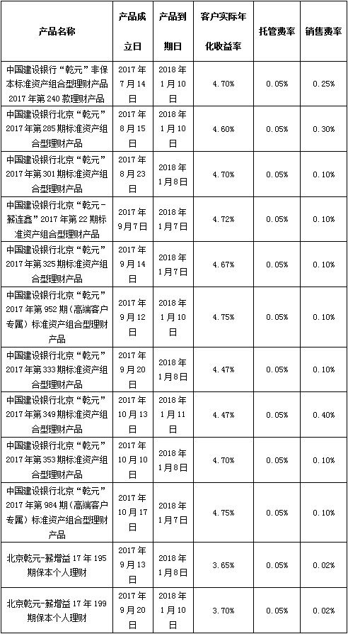 中国建设银行个人类理财产品终止及清算公告2018年1月12日