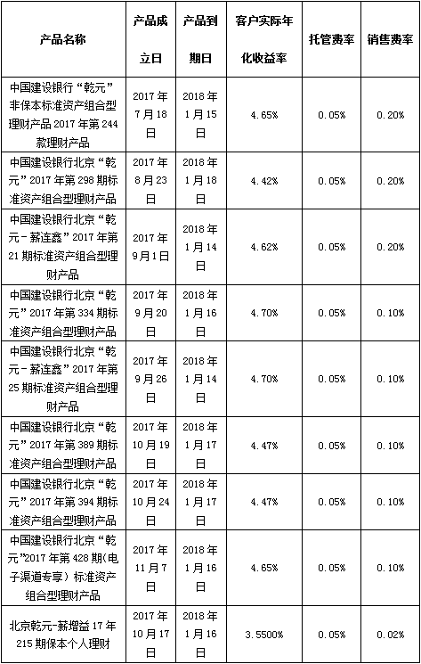 根据与投资者的约定,中国建设银行发行的下列理财产品已经到期并完成资金兑付,现将有关情况公告如下: