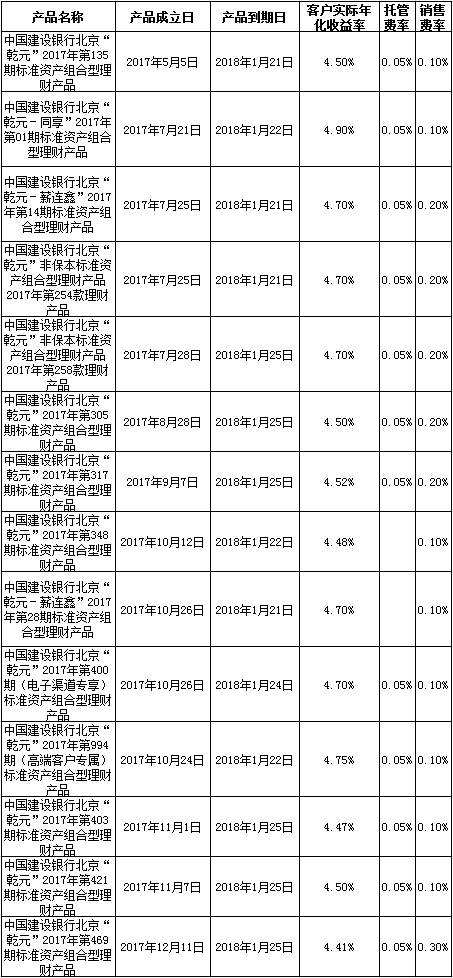 中国建设银行个人类理财产品终止及清算公告2018年1月26日