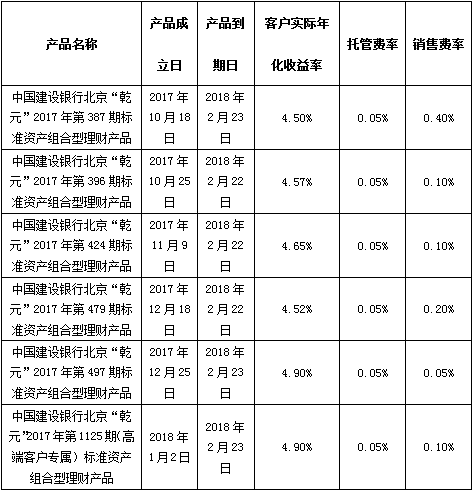 根据与投资者的约定,中国建设银行发行的下列理财产品已经到期并完成资金兑付,现将有关情况公告如下: