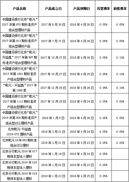 中国建设银行对公类理财产品终止及清算公告2018年4月28日