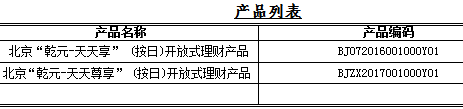 调整上述理财产品说明书条款中的产品规模,北京“乾元-天天享”(按日)开放式理财产品规模上限调至120亿元;北京“乾元-天天尊享”(按日)开放式理财产品规模上限调至70亿元。