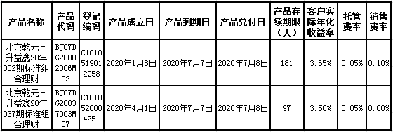 中国建设银行理财产品终止及清算公告2020年7月13日