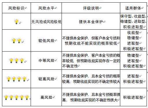 本产品为非保本浮动收益型理财产品,不保证本金和收益,请您充分认识投资风险,谨慎投资。本期产品期限为120天(中国建设银行有权对产品进行展期或提前终止),存续期内,产品不接受申购或赎回申请。本期产品内部风险评级级别为盏警示灯 ,风险水平属于中等风险。最不利情况下,您将损失全部收益甚至包括全部本金。本理财产品适用于稳健型、进取型 积极进取型客户。