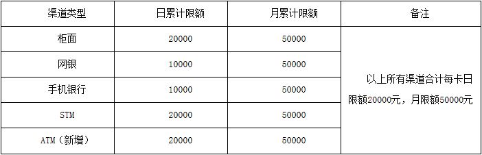 我行龙卡信用卡现金转出业务将于12月16日起新增ATM受理渠道,现金转出业务该渠道相关收费标准及其他业务规则遵照现行《中国建设银行龙卡信用卡领用协议》及《收费标准》执行。现金转出业务各受理渠道限额如下: