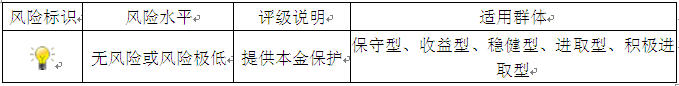 本期产品为保本浮动收益型理财产品,本理财产品有投资风险,只保障理财资金本金,不保证理财收益,您应当充分认识投资风险,谨慎投资。本期产品期限为91天(中国建设银行有权对产品进行展期或提前终止)。本期产品内部风险评级级别为一盏警示灯,风险程度属于无风险或风险极低,适用于保守型、收益型、稳健型、进取型及积极进取型投资者。最不利情况下,客户只能收回投资本金,不能获得任何投资收益。